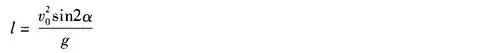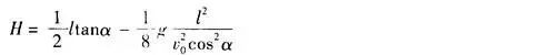 式中,H为个别飞石飞行的.大高度,m;l为个别飞石飞行的水平距离,m;vo为初速度,m/s;α为飞石抛射角,(°);g为重力加速度,m/s2。
