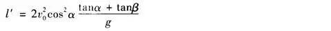 当在斜坡地形进行爆破时,如山坡角度为β,则沿山坡下方的飞石.大距离为: